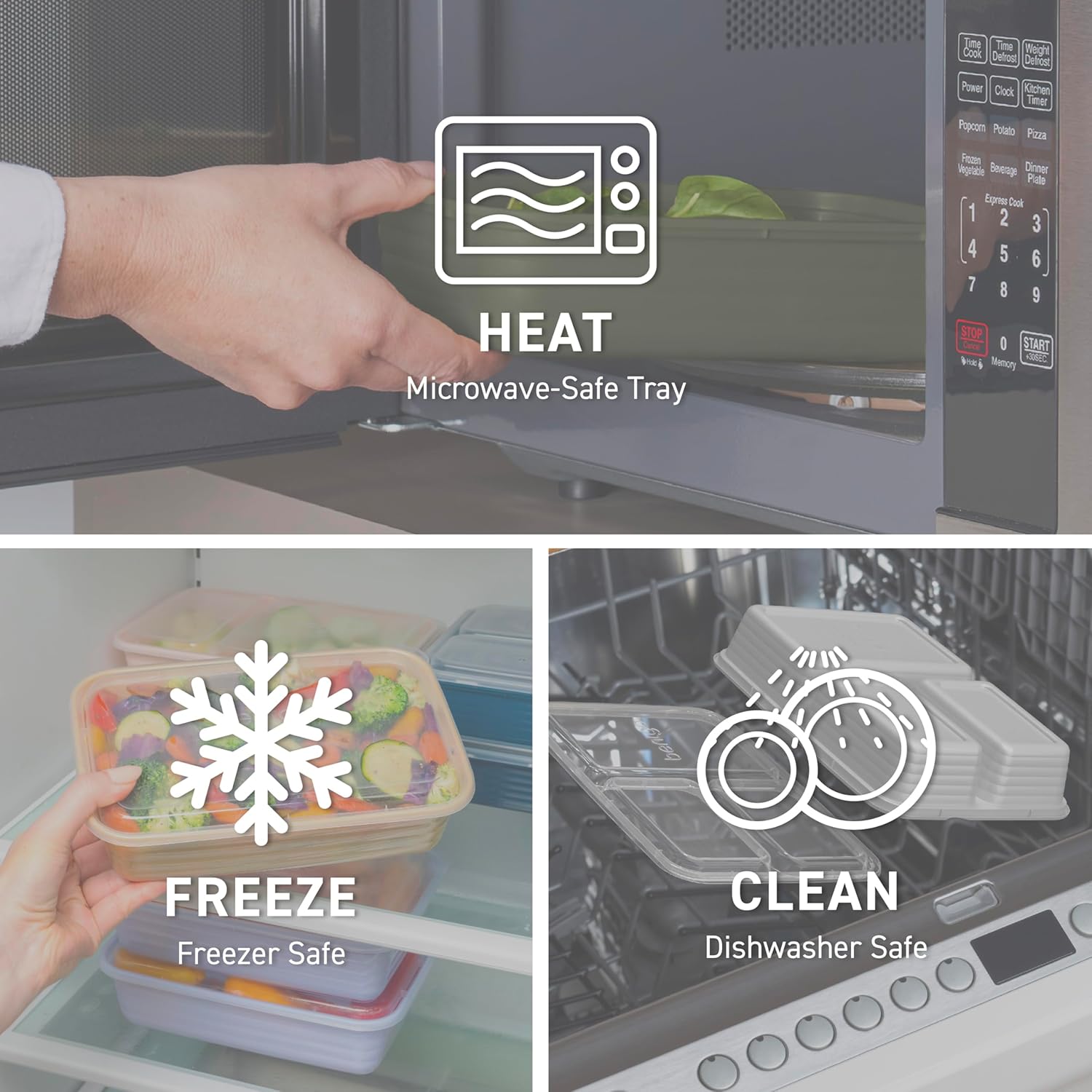 - Easy to Heat & Clean: Safely heat up your food straight from the freezer or refrigerator for warm, delicious meals and leftovers. Each meal prep container is both microwave and top-shelf dishwasher safe. Note: before microwaving, open the lid corner to allow steam to vent. For best results, hand wash to extend the life of the product.