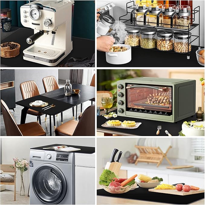 - Versatile Silicone Mat: Can be used as a stove top cover for electric stove or induction cooktop, but cannot be used while they are working. This dryer top protector mat can be placed under microwave, air fryer, hot plate, oven, coffee maker and grill for protection from heat. A workbench mat for polymer clay, repairs, woodworking, gluing, painting, coloring, embossing and stamping. It can be also used for doing nails, makeup, acrylic pouring, wax, epoxy resin, art & crafts