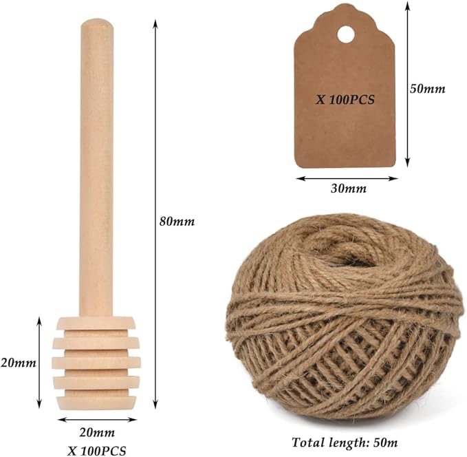 - 【Value Pack】- This honey dippers set includes 100pcs 3-inch mini honey stir sticks, 50pcs kraft paper tags, 50m jute twine string rope. Excellent drizzling tool for honey, syrup, molasses or any viscous liquid., enough to meet your different purposes