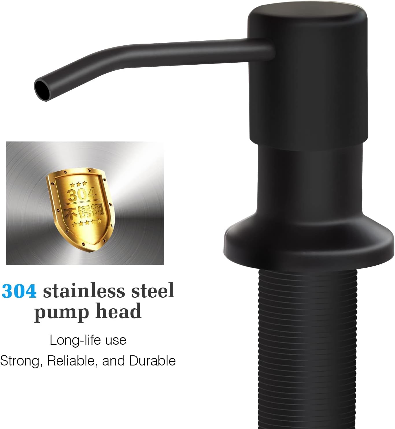 - HIGH QUALITY MATERIAL:This sink soap dispenser for kitchen sink is made of durable 304 stainless steel and PE plastic. This soap dispenser pump head possesses long-lasting performance and can survive over 50,000 press tests. Not only waterproof, and is perfect for damp environments.