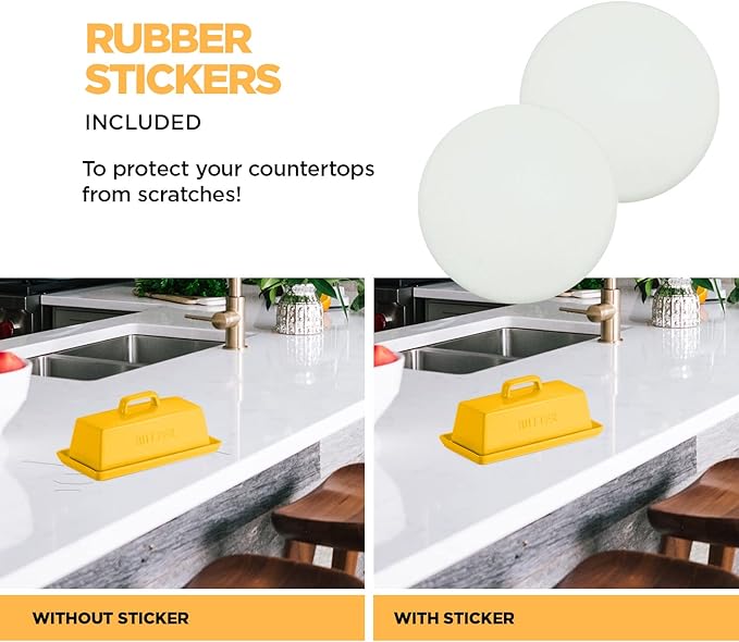 - ANTI SCRATCH - We include rubber stickers that can be attached at the bottom of the dish. These will protect your countertop against unsightly scratches and will keep it in place while cutting the butter.