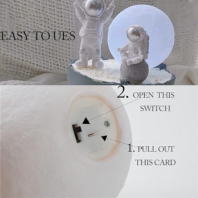 Cake Topper for Kids Astronaut Space Birthday Cake Decoration, 3D Soft Light Moon Outer Space Cake Topper for Party Supply, LED Moon Planet Birthday Cake Decoration