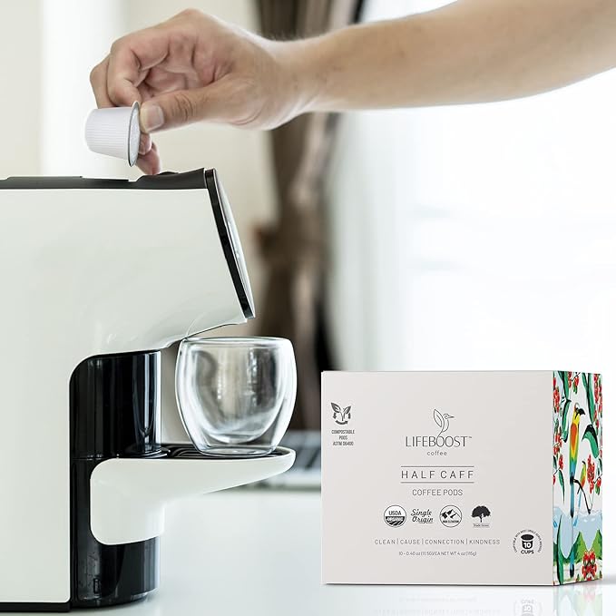 Lifeboost Half Caff Coffee K Cups - Low Acid Half Caff Coffee Pods - Single Origin Non-GMO Mold Free Pods Compatible with Keurig & Keurig 2 - No Mycotoxins or Pesticides - 10 Count