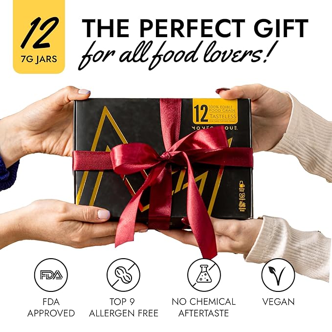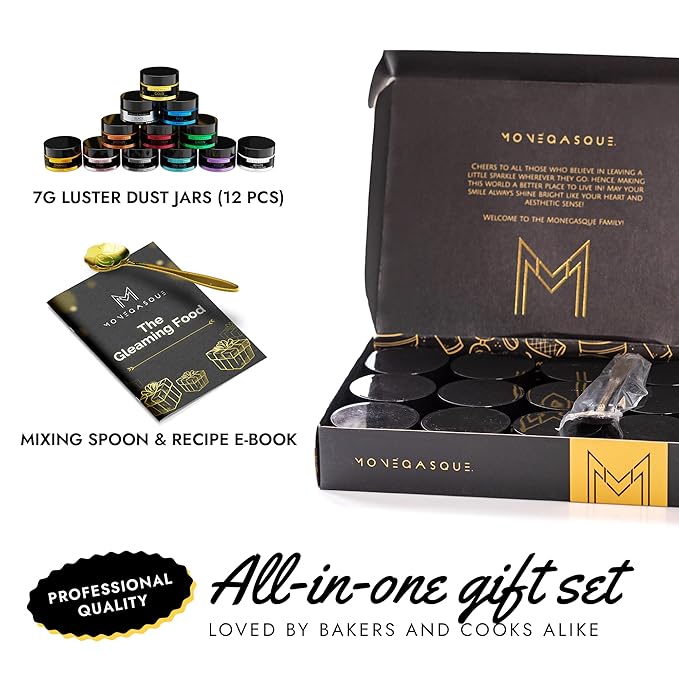 - THE PERFECT GIFT FOR CREATORS - Unleash culinary creativity with the MONÉGASQUE Luster Dust Edible Glitter 12Pcs Set. Ideal for baking gifts for women, men, and anyone who loves to cook, this versatile collection is perfect for inspiring delicious projects and transforming ordinary bakes into masterpieces. Perfect for bakers of all skill levels.