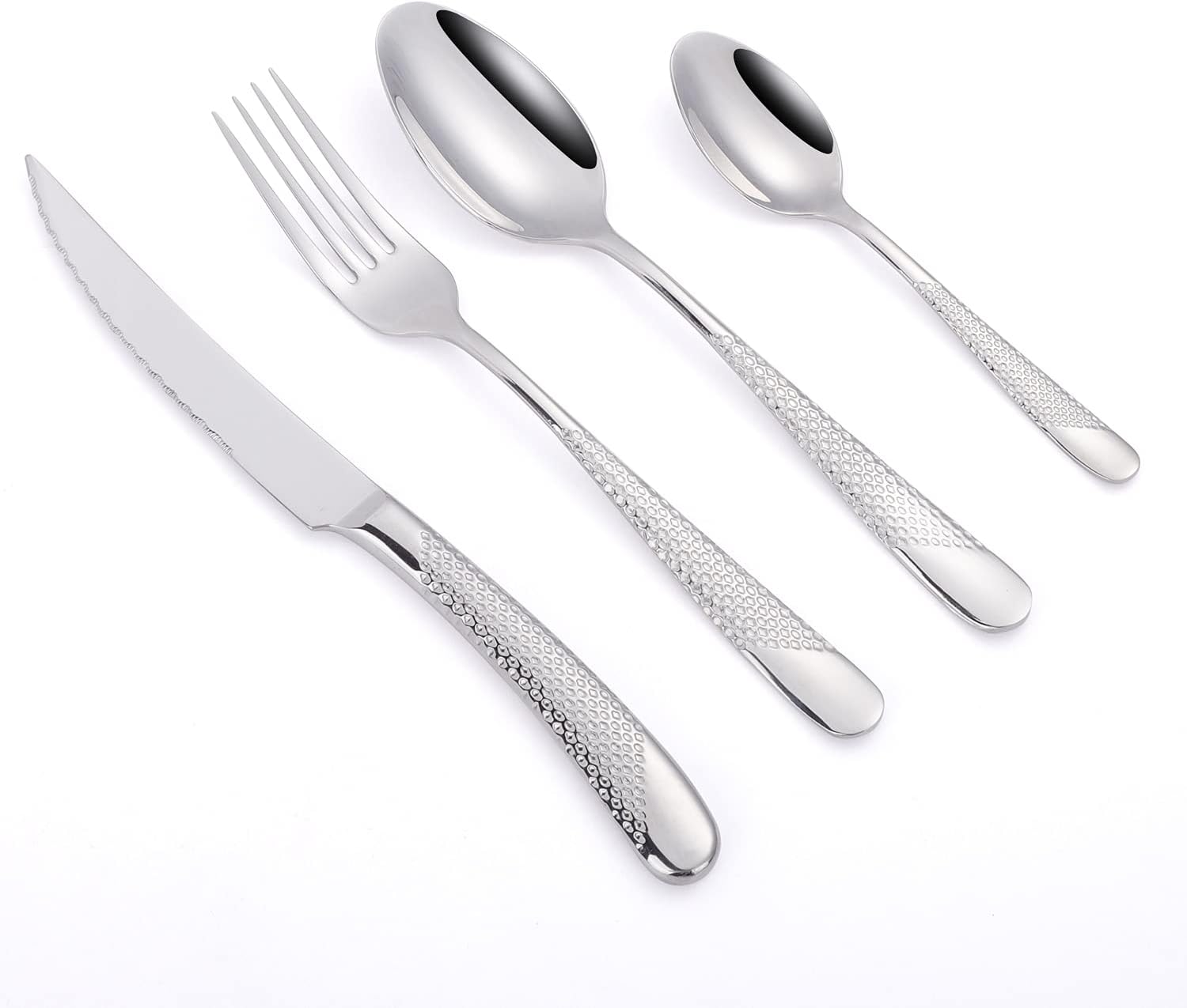 - 4.ćService for 4ć:This silverware set includes 4 dinner fork, 4 dinner spoons, 4 dinner knives, 4 tea spoons, It can satisfy most family of 4 people