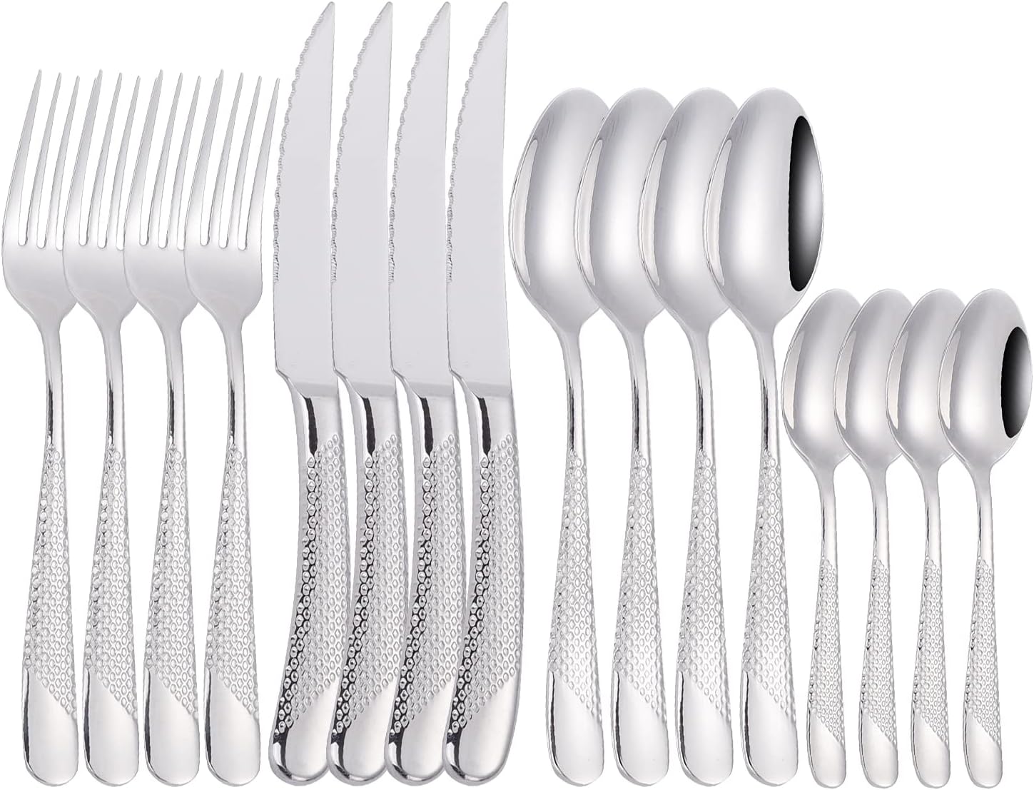 16 Piece Silverware Set,Stainless Steel Flatware Set Spoon and Fork Set for 4,Kitchen Utensil Cutlery Set Mirror Finish Dishwasher Safe Gift Package (silver)
