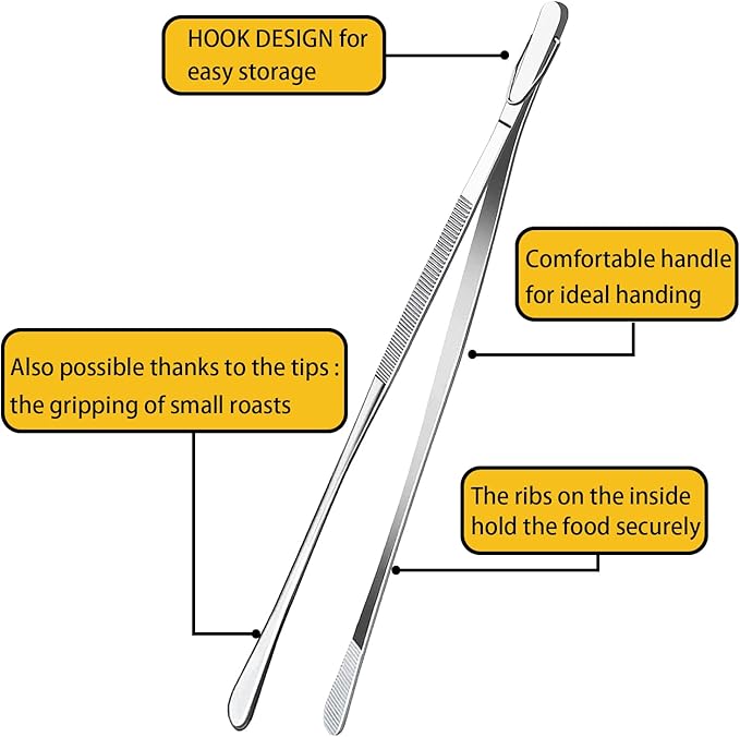 - PACKAGE CONTENT - 1 ร 12-Inch stainless steel cooking tweezers.