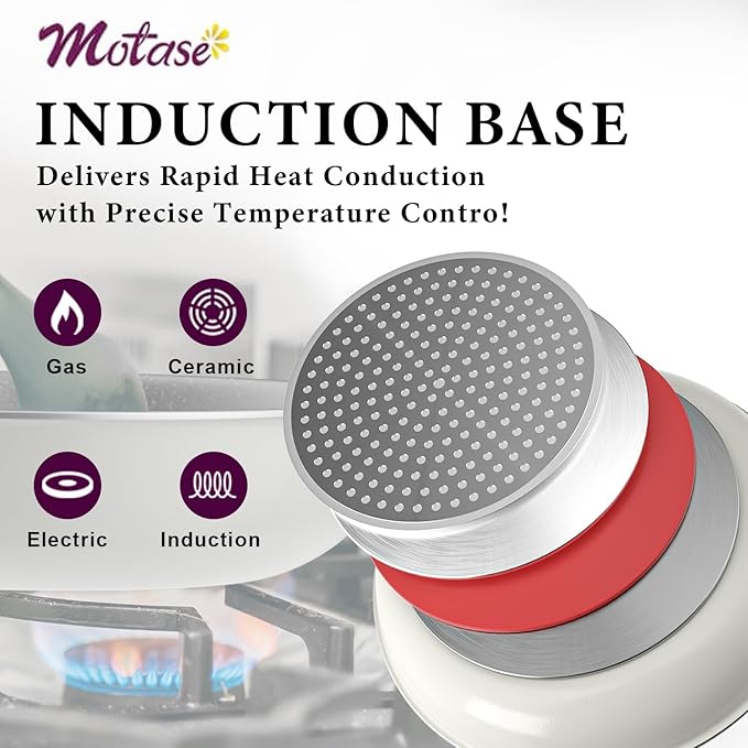 - You won't Compromise on Quality: Balanced convenience-rich features, rapid&even heat transfer, and nonstick performance as the same as other Motase cookware sets.