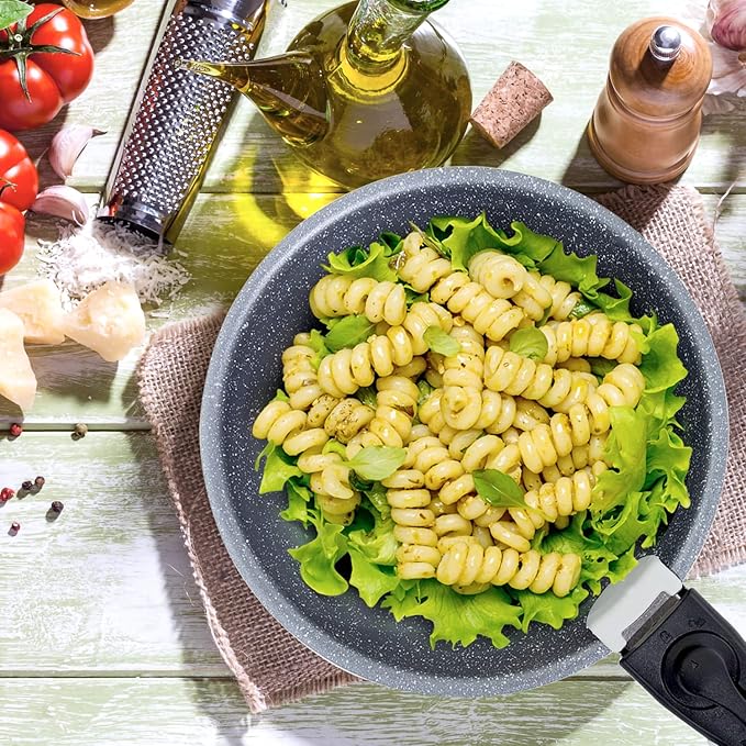 - Multitasking Cookware Set: Removable handle for the ultimate versatility– go from ALL kinds of stoves to the oven, to the grill, to the fridge, and onto the table in one click.