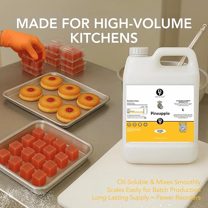 Dolce Flav Pineapple Extract – 1 Gallon Oil-Soluble Kosher, Sugar-Free, Concentrated Tropical Flavor for Candy, Chocolates & Desserts, Includes Measured Dropper