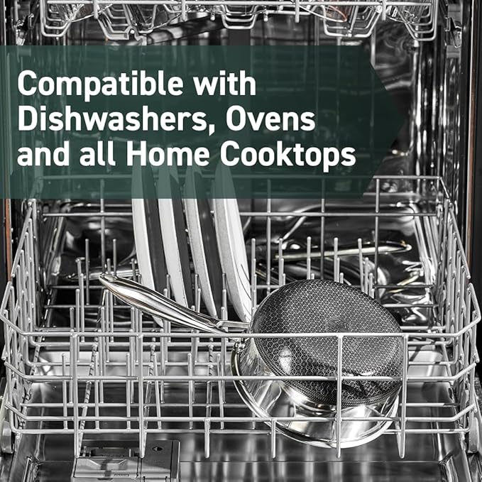 - Tri-ply construction with an aluminum core for quicker even heating, it’s safe to use on any home cooktop or stovetop, including induction. HexClad is metal utensil-safe, dishwasher-friendly, and oven-safe up to 900°F. (Tempered glass lids are oven-safe up to 400°F, while stainless steel lids are oven-safe up to 900°F.)
