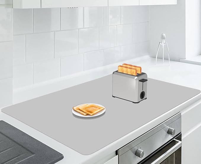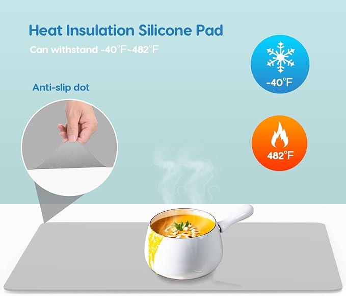 - 【HEALTHY, FOOD GRADE】: The kitchen counter protector is made of food grade silicone which can directly contact food. Safe, odorless, kid and baby use friendly. It is environmental and reusable. Heat resistant between -40°F to 482°F. Protect countertops against the heat of kitchen appliances like microwave, toaster, air fryer and oven, and reduce the noise from vibration while the appliance is in use.