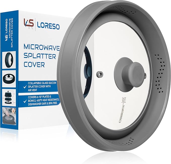 - Universal Splatter Guard – Designed for cover plates, bowls, and other microwave safe dishware this grease splatter guard helps keep food from popping all over the inside of your appliance for improved cleanliness.