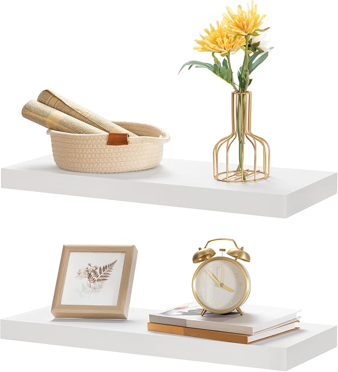 HOOBRO Floating Shelves for Wall, Wall Mounted Shelf Set of 2, 23.6" Hanging Shelf with Invisible Brackets, for Wall in Bathroom, Bedroom, Toilet, Kitchen, Living Room, Office, White WT60BJ01