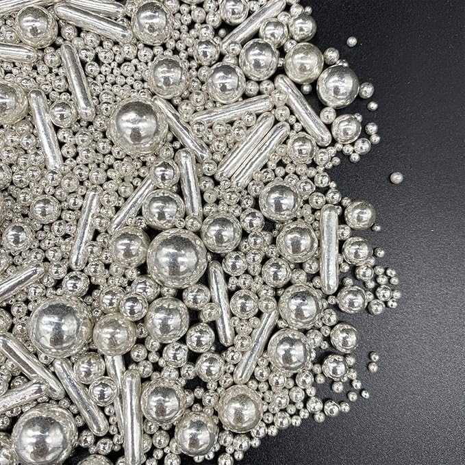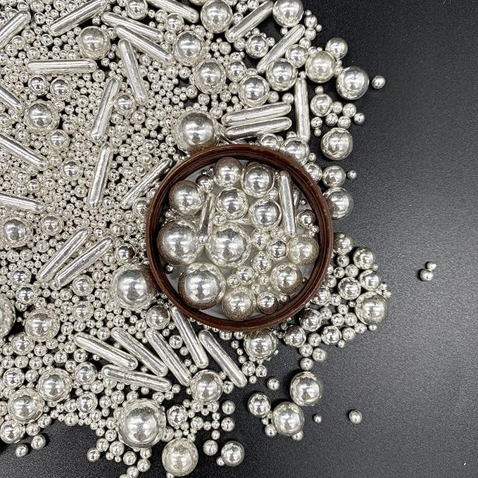 - Package includes :1 bottle silver pearl sugar sprinkles candy ,4.2oz/120g.Ingredients: Sugar, Beet Root, Spirulina, Carnauba Wax,Gluten free,Nut free