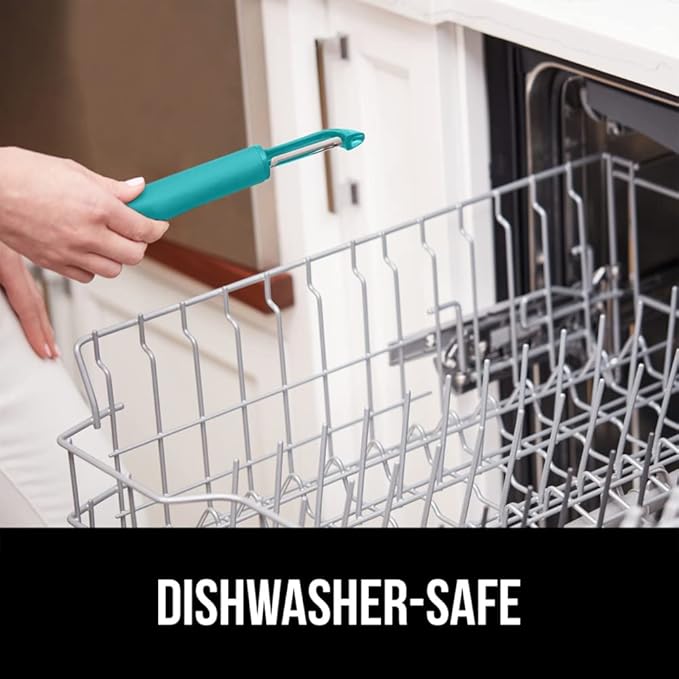 GORILLA GRIP Patented BPA-Free Sharp Stainless Steel Swivel Vegetable Peeler, Comfortable Handle Potato Peelers, Smooth Peeling, Peel Carrots Apple, Includes Blade Cover, Kitchen Tool, Turquoise
