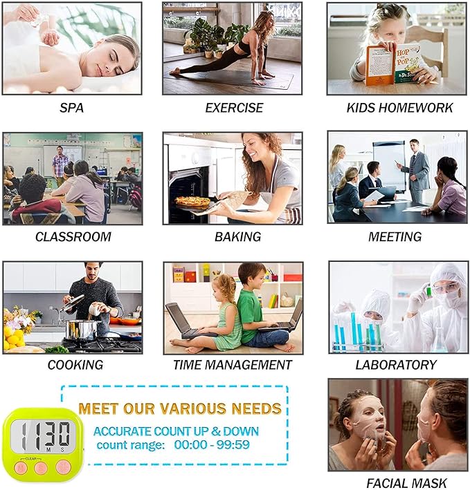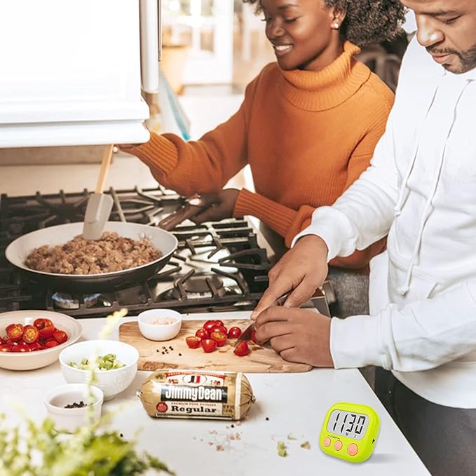 - Timer with big buttons, large digital display, loud buzzer and clean bright look