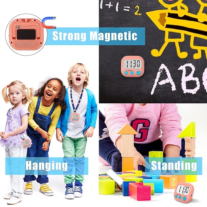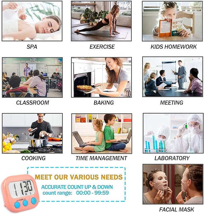 12 Pack Digital Kitchen Timers for Cooking Magnetic Timer for Cooking Loud Alarm Pink