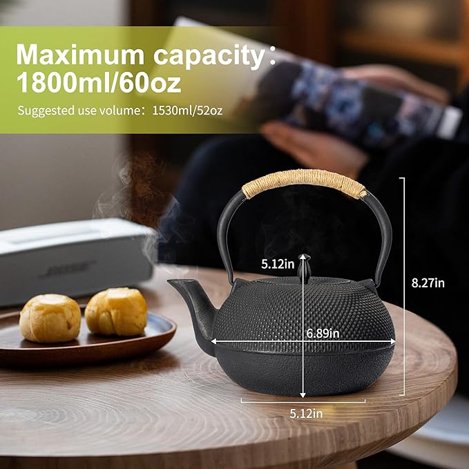 suyika Japanese Tetsubin Tea Kettle Cast Iron Teapot with Stainless Steel Infuser 60 oz/1800 ml
