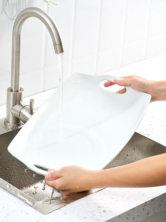 - CERAMIC CRAFTED: The Serving dish for entertaining is made of food-grade quality ceramic. The smooth glaze makes the porcelain rectangle platter easy to clean. White large serving platter safe for dishwasher, microwave, oven.