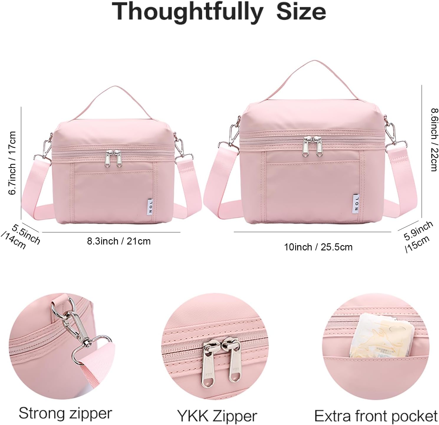 NOL Natural Organic Lifestyle Insulated Lunch Bags for Women Cooler Bag Lightweight Nylon Waterproof Lunch Box For Work (Medium, Pink)