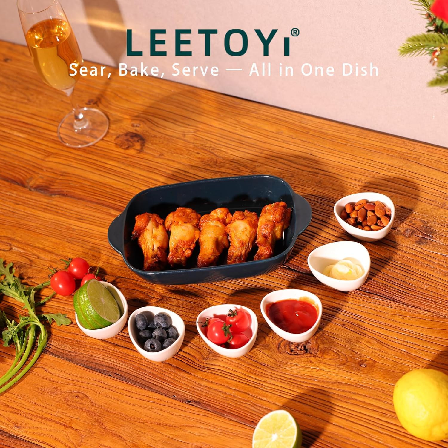LEETOYI Ceramic Small Baking Dish, Porcelain 2-Piece Rectangular Bakeware with Double Handle, Baking Pans for Cooking and Cake Dinner 7.5"×5 (Royal Blue)
