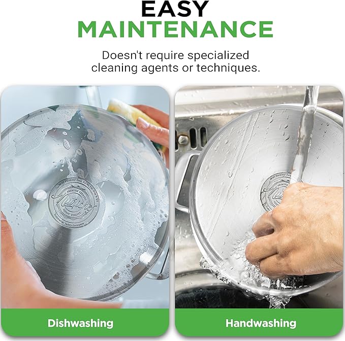 - HIGH-QUALITY MATERIAL: Made with quality stainless steel, you can be sure of this product’s longevity in your household. It also features an 18/8 non-reactive stainless steel interior for superior performance and also includes strong riveted handles