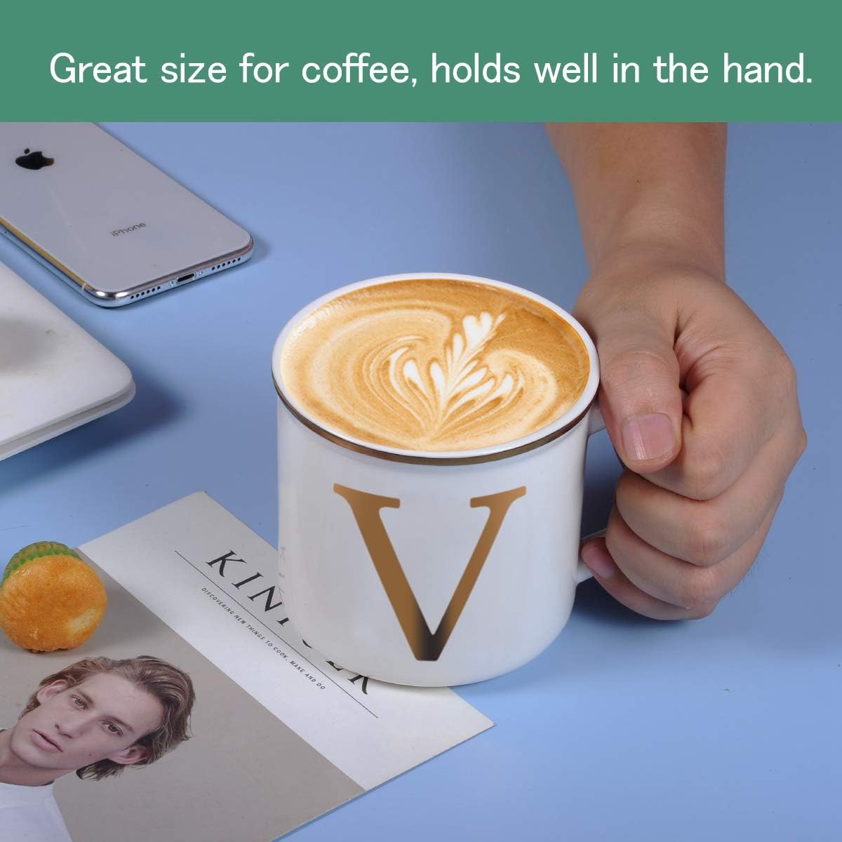 Miicol Ceramic Coffee Mug 16 oz, Monogram Coffee Cup, Golden Initial Tea Mug, Personalized Tea Cup, Unique Gift, Large Mug for Home, Office, Letter V