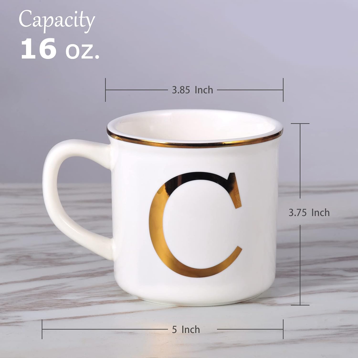 Miicol Ceramic Coffee Mug 16 oz, Monogram Coffee Cup, Golden Initial Tea Mug, Personalized Tea Cup, Unique Gift, Large Mug for Home, Office, Letter C