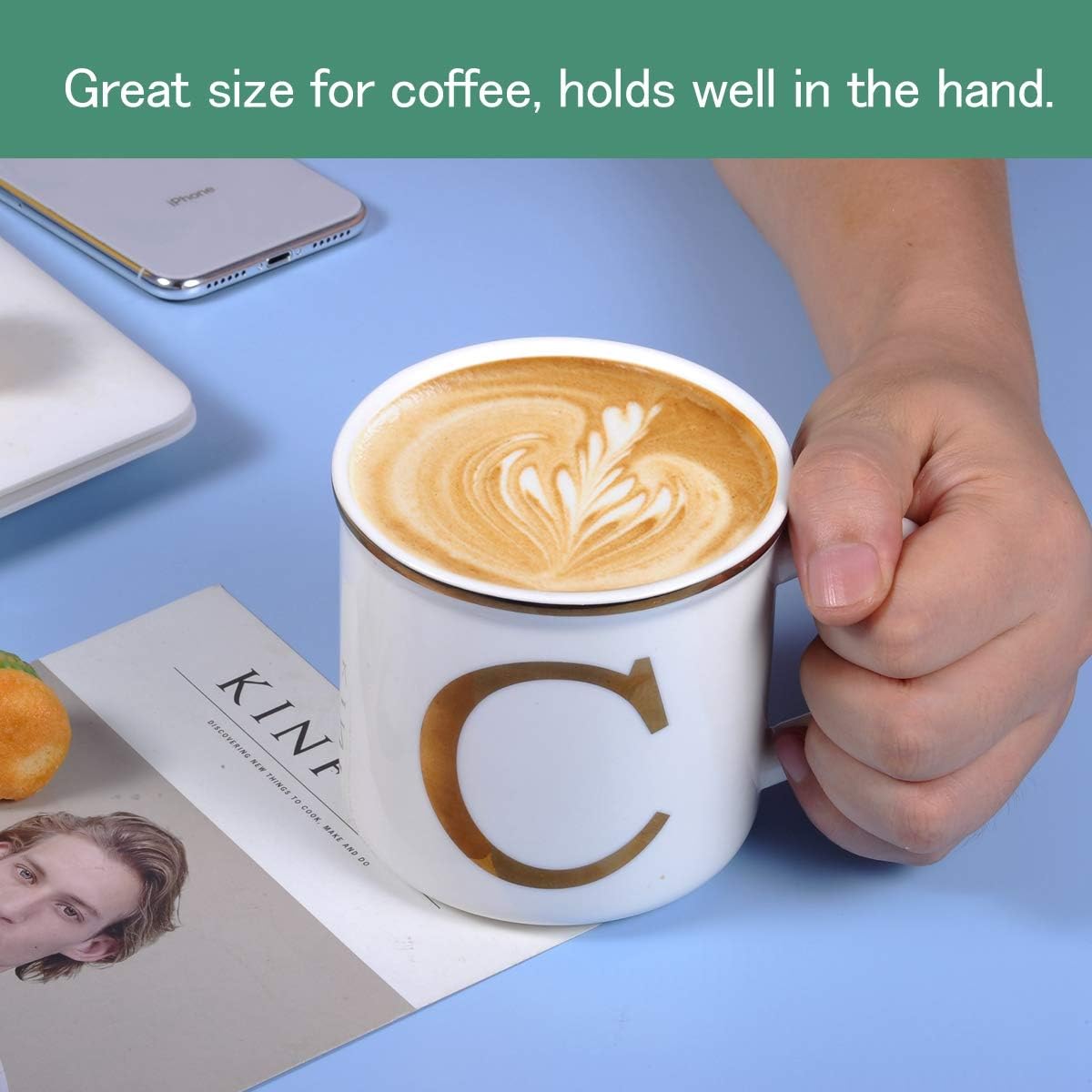 - A Personalized Mug: Showcase your personality with the minimalist design of the MiiCOL ceramic coffee mug, featuring initials. Crafted from pure white ceramic, the mug is adorned with a gold initial on both the front and back, ensuring it is suitable for both right and left-handed use