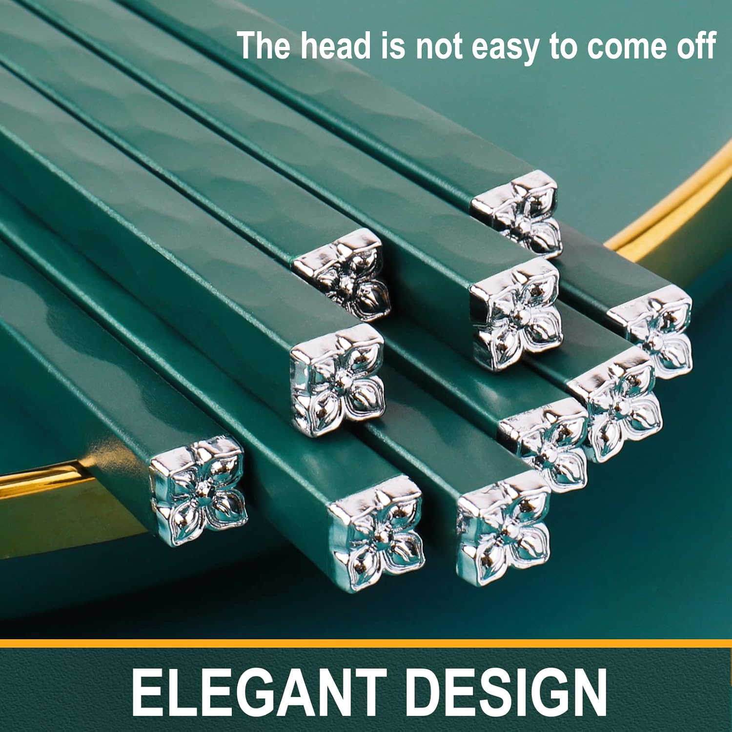 - 【Value 5 Pairs Elegant Chopsticks Set】Our cute chopsticks set is decorated with natural green color and embellished silver metal head, which are very stylish and modern. You can feel different Asia customs when you can enjoy Asia food such as sushi and ramen or even General Tso’s Chicken.