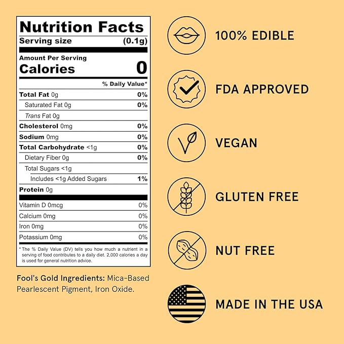 Fancy Sprinkles Fool's Gold Premium Edible Glitter, 100% Edible Glitter for Sparkling Food & Drinks No Taste or Texture (4gm)