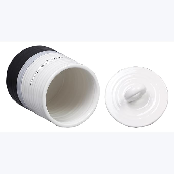 Young's Inc. 4 Pcs Set Rustic Modern Ceramic Canisters- Storage Container for Kitchen and Bathroom - Beautiful Home Decor Accent to Store Food, Coffee, Tea, and More - Black, White