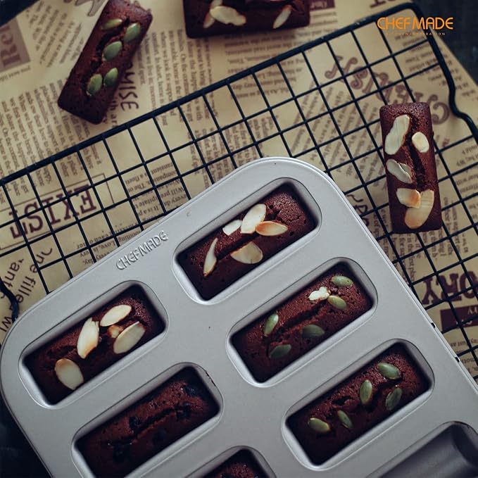 CHEFMADE Financier Cake Pan, 10-Cavity Non-Stick Rectangle Muffin Pan Biscuits Cookies Bakeware for Oven Baking (Champagne Gold)