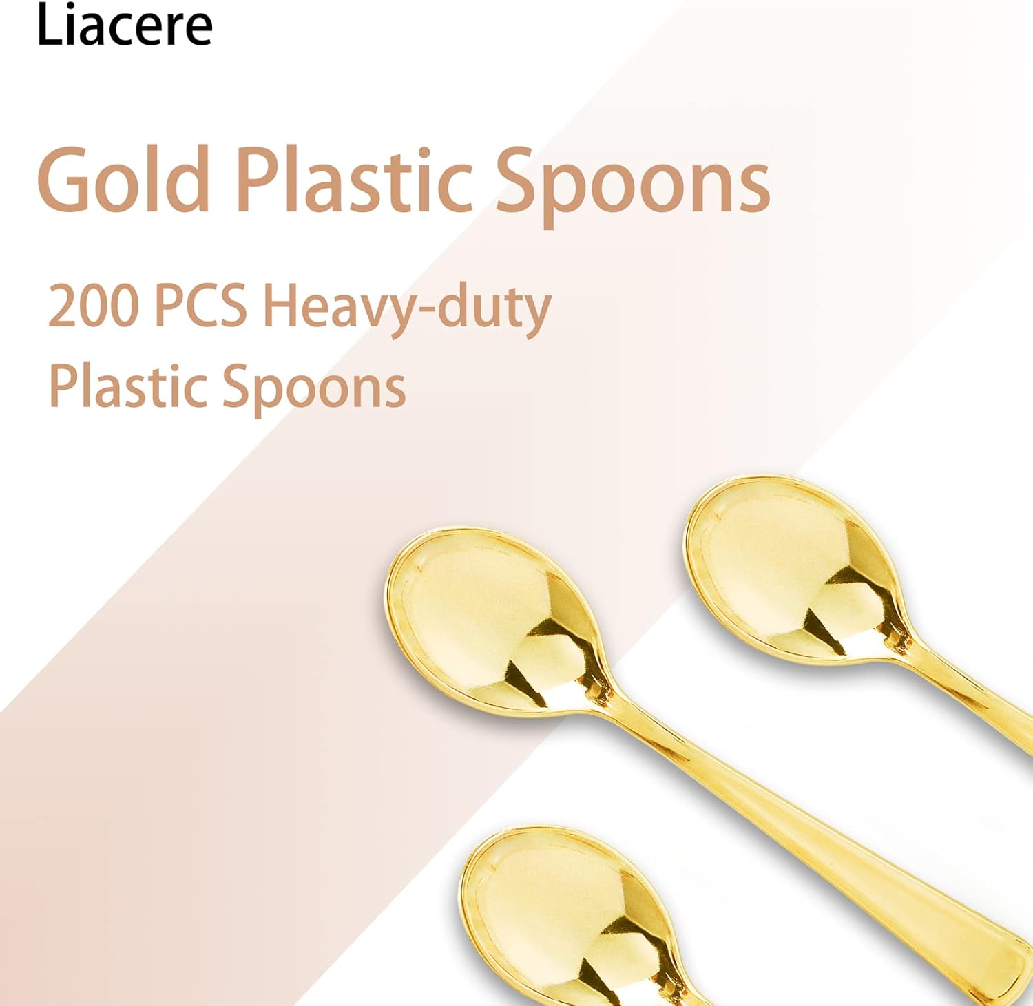 Liacere 200 Pack Gold Plastic Spoons - 6.7 inch Heavy Duty Plastic Spoons - Heavyweight Gold Disposable Spoons for Parties & Weddings & Restaurants & New Year