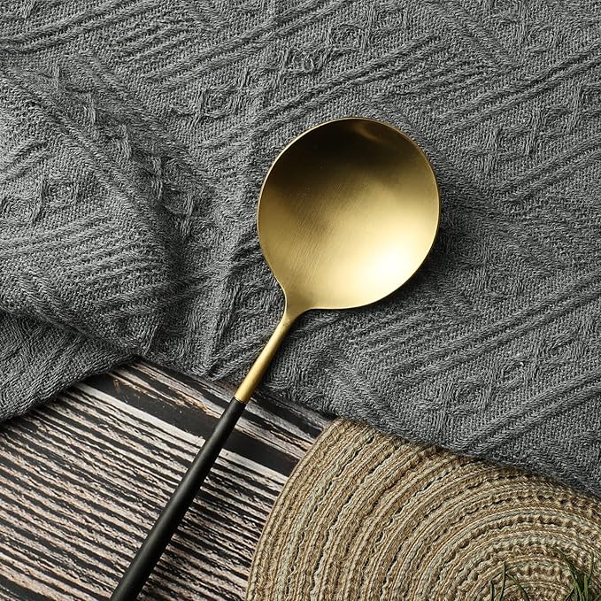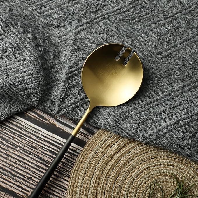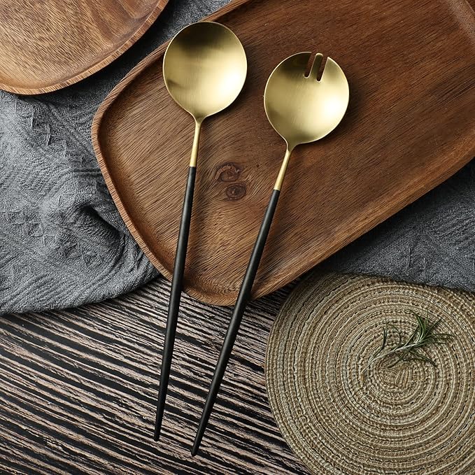 Salad Servers,Spoon and Fork Set 11.41 inch,18/10 Stainless Steel Salad Serving Titanium Plating (black gold)