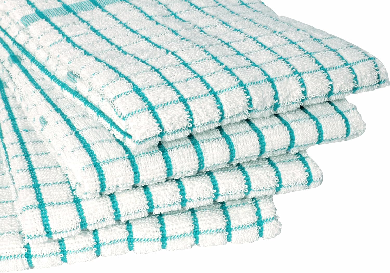 - SET OF 4 DISH TOWELS: This pack includes 4 premium 20" x 28" kitchen dish cloths made from soft, highly absorbent terry cotton. Perfect for everyday kitchen use, these dish towels offer excellent absorbency and durability for drying dishes, cleaning, and wiping surfaces.