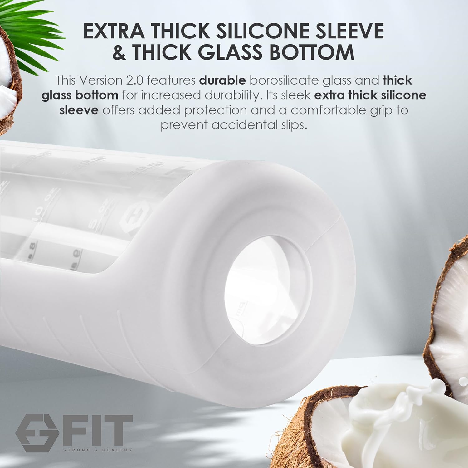- Water Bottle and Cleaning Brush Set: Upgrade your hydration routine with our 32 oz Glass Water Bottle with Time Marker and Cleaning Brush Set; this version features an extra thick silicone sleeve for extra protection, insulation, and a secure grip; we've also upgraded one of the lids to a straw lid for sipping on the go; the 32-inch Water Bottle Brush is made from durable silicone material, which effectively removes dirt and residue; plus, it does not absorb unpleasant odors and stains