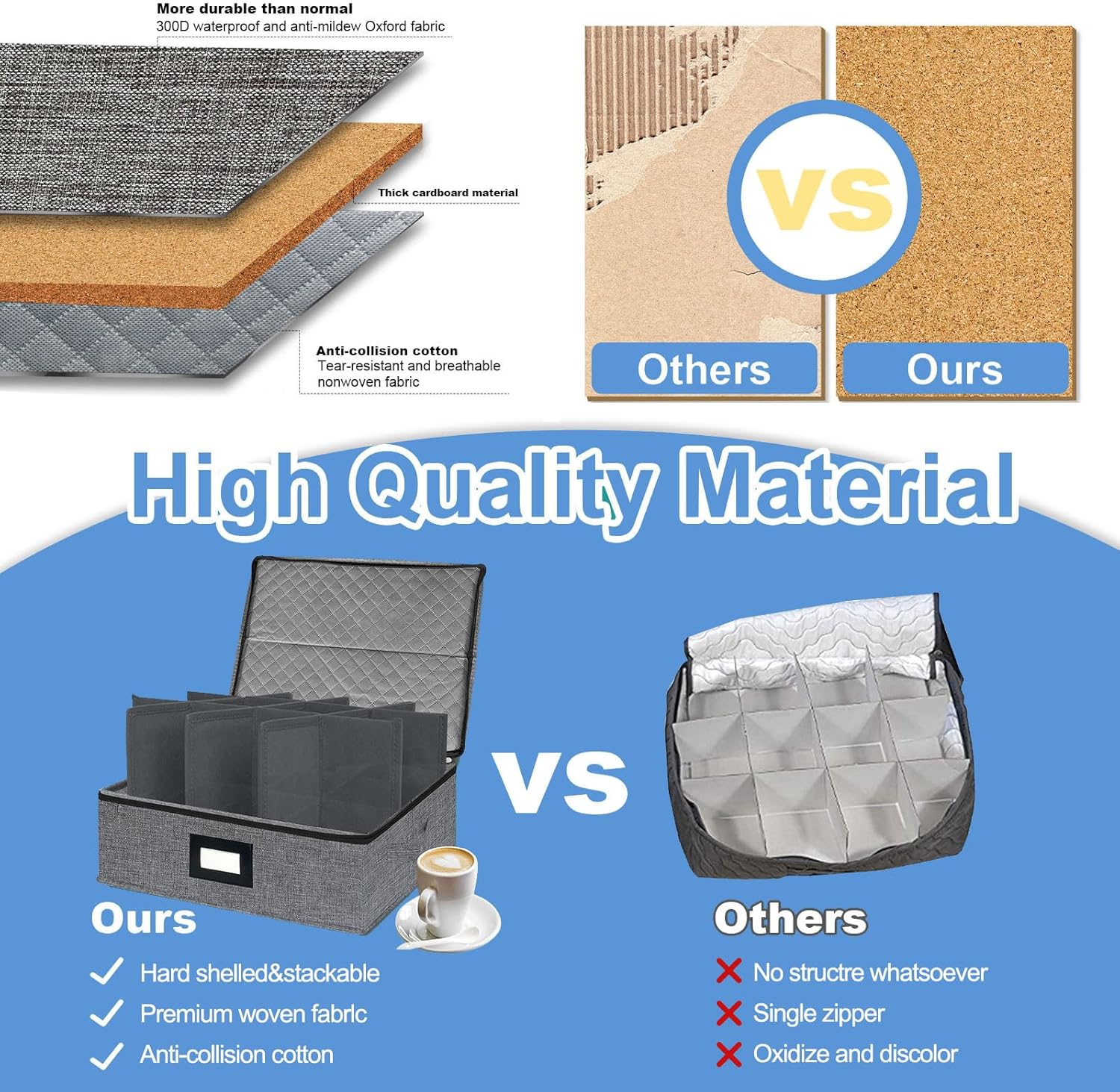 - π₯[Perfect Design] - The mug storage box holds 12 Coffee Mugs and Tea Cups, and measures 16.5x13x6inches. Each china storage box comes with a label holder for easy identification of the contents.