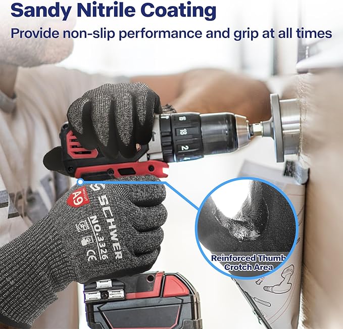 Schwer ProGuard Highest Level Cut Resistant Work Gloves PR3326 for Extreme Protection,ANSI A9 Cut Gloves with Reinforced Thumb, Non Slip, Breathable, Durable, Touch-screen, Non PFAS, Black 1 Pair(S)