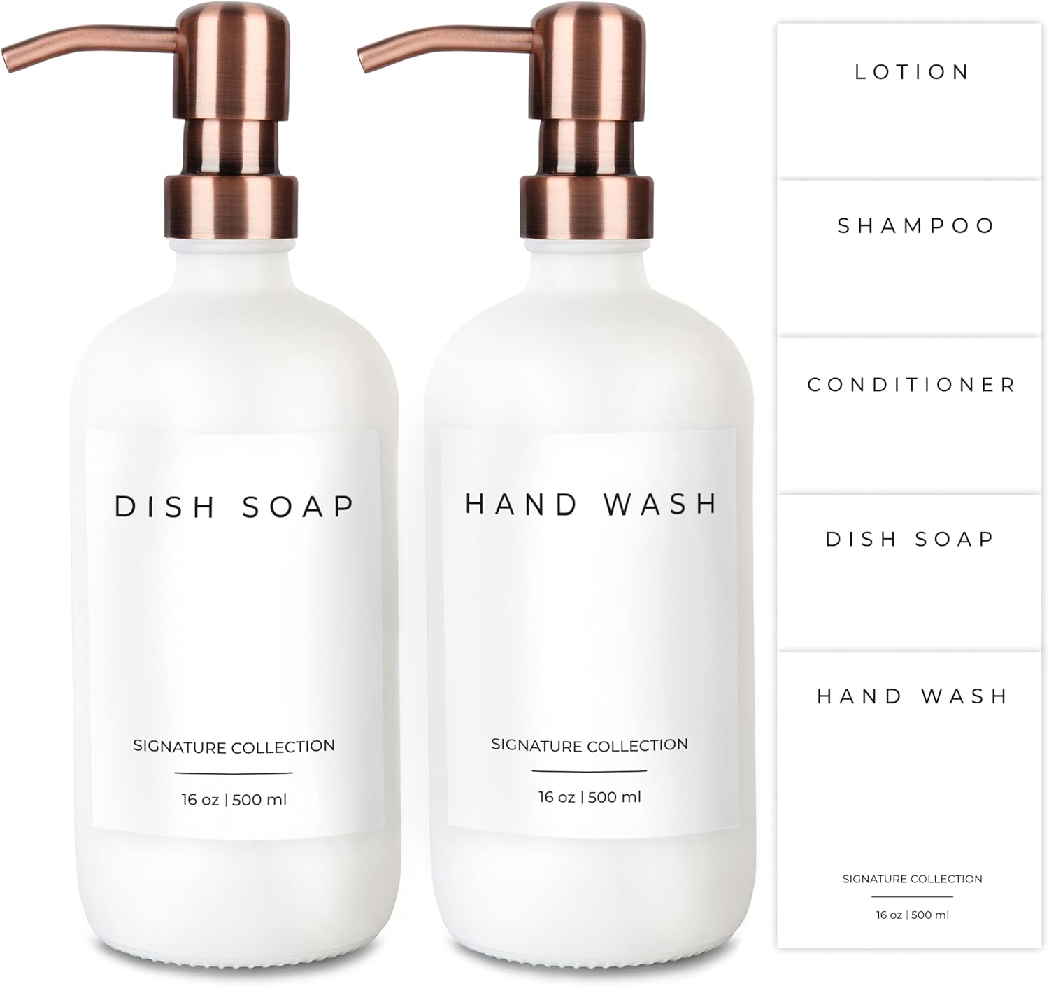 - ✅ 2-in-1 COMBO: Upgrade your home with our glass soap dispenser set. The dish soap dispensers are crafted from the highest quality glass and can be used as soap dispensers for kitchen sinks, soap dispensers for bathrooms, or as hand soap dispenser of your favorite liquid. The kitchen soap dispensers come with 2 dish soap dispensers for kitchen bottles (16 ounces), 2 stainless steel pumps, and 5 waterproof labels. Our selection includes colors including amber, clear, white, and black.