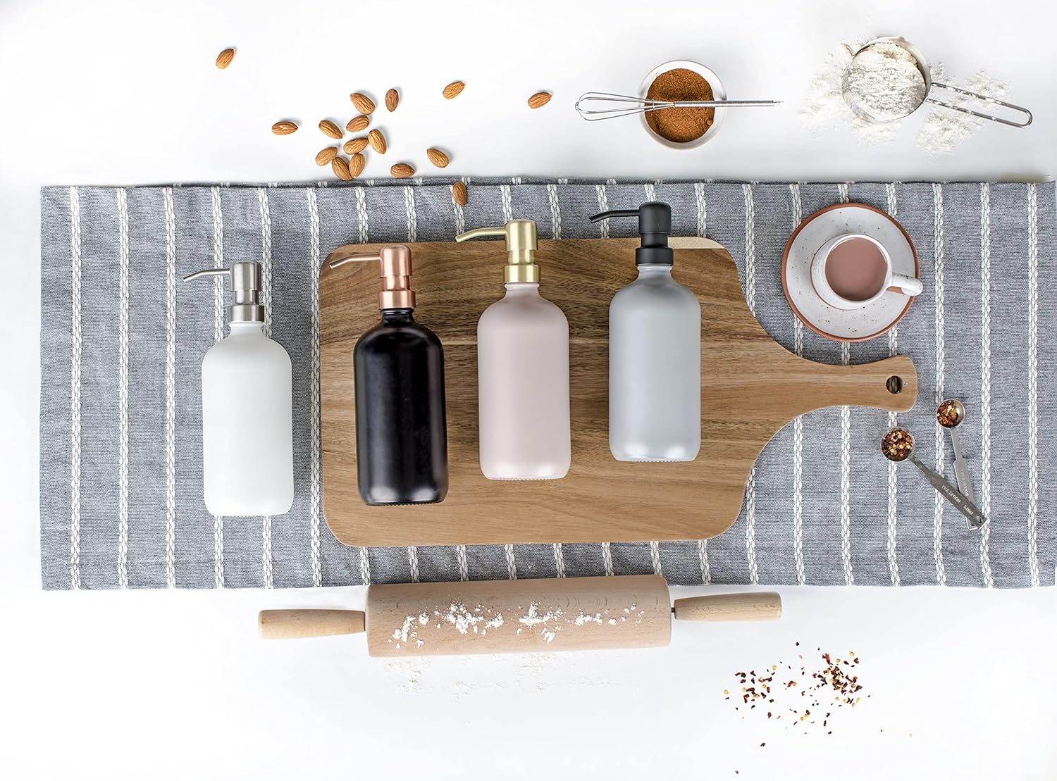 - ✅ KITCHEN OR BATHROOM USE: While other dispensers peel over time, our dispensers are made of premium quality and last far longer. The bathroom soap dispensers and kitchen soap dispenser set are 16 ounces and are refillable, requiring fewer refills. Ideal for using as a bathroom soap dispenser set and the glass soap dispenser with pumps boast 2 cc stainless steel pumps.