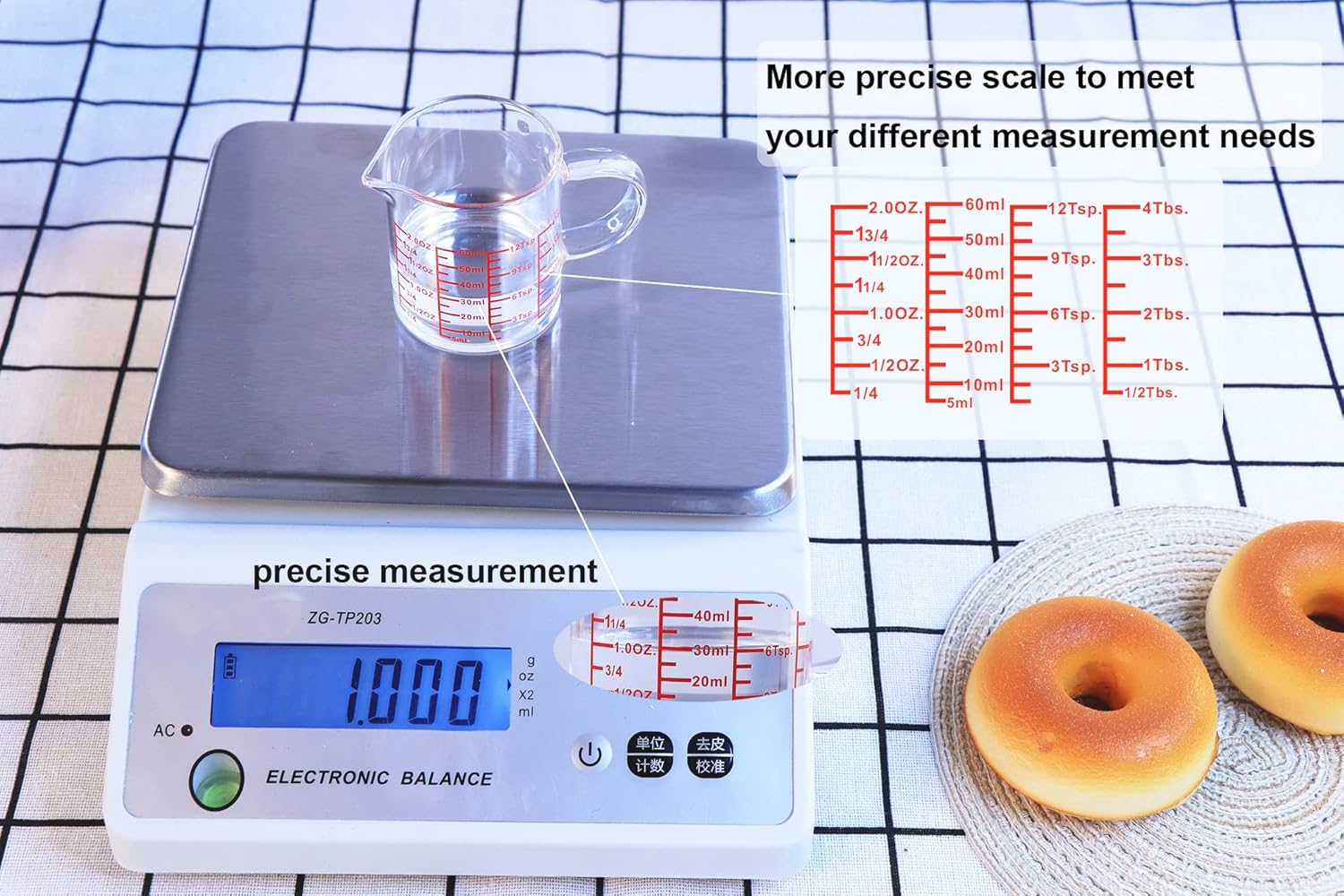 - CONVENIENT INDICATIONS: With line markings graduated in teaspoons, tablespoons, fluid ounces, and millilters all the way up to 2oz, this mini measuring glass has the information you're looking for. the dishwasher is safe, but as time goes by, the dishwasher will affect the measurement marks