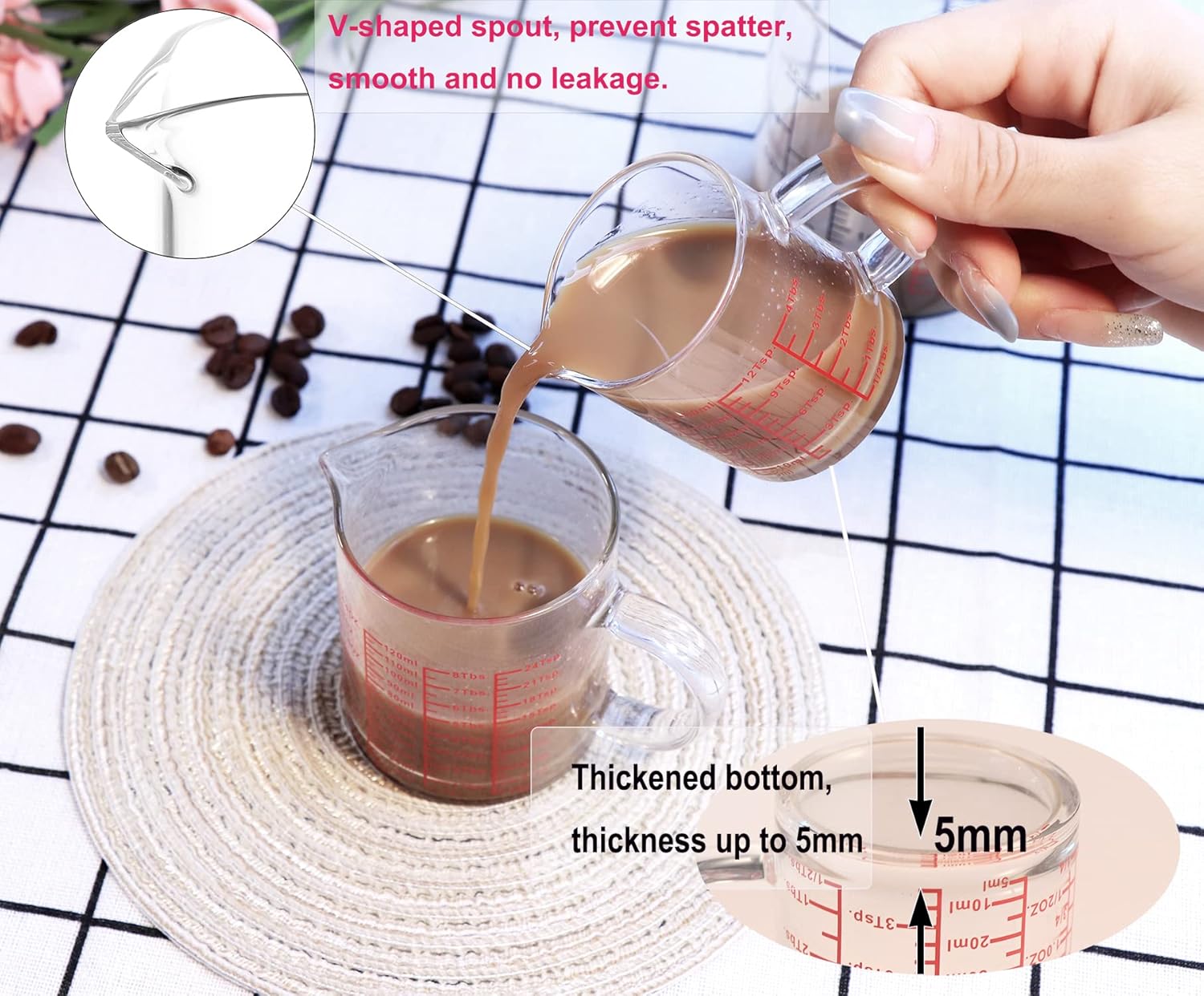 - MORE ACCURATE MEASUREMENTS: The package contains 2Pcs measuring glasses.This small size glass features easy-to-read and finer lines, making every measurement just what you need.