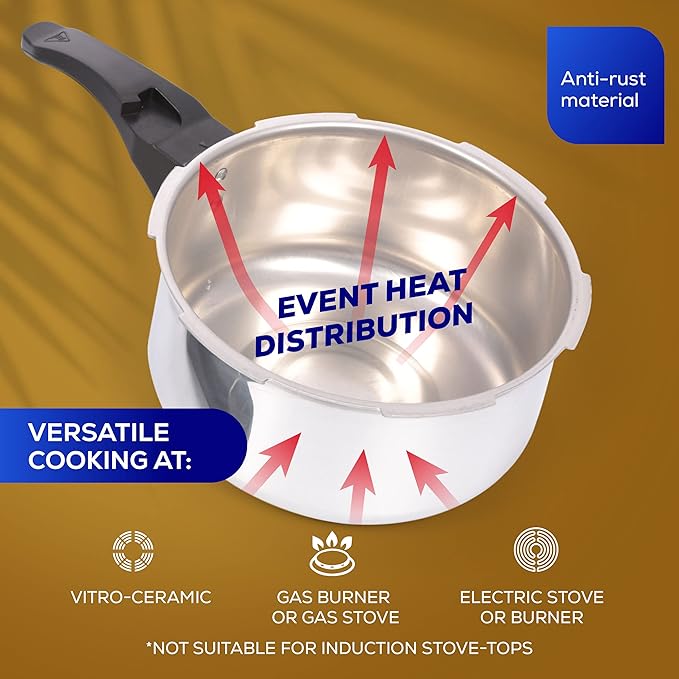 - ✅ Versatile & Compatible with Multiple Stovetops: This high-performance pressure cooker works efficiently on gas, electric, and glass-ceramic stovetops. It is also dishwasher-safe for hassle-free cleaning. (Not compatible with induction cooktops.)