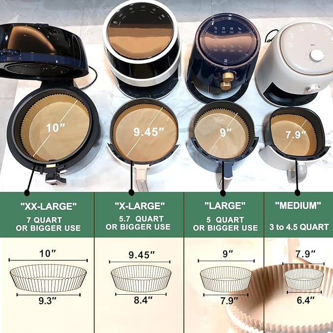 Ninja Power XL Gourmia Air Fryer Disposable Paper Liners - 200pcs, 9 Inch Round Parchment Liners for 4/5/6 qt Air Fryers, Baking Paper for Oven & Microwave
