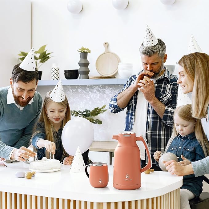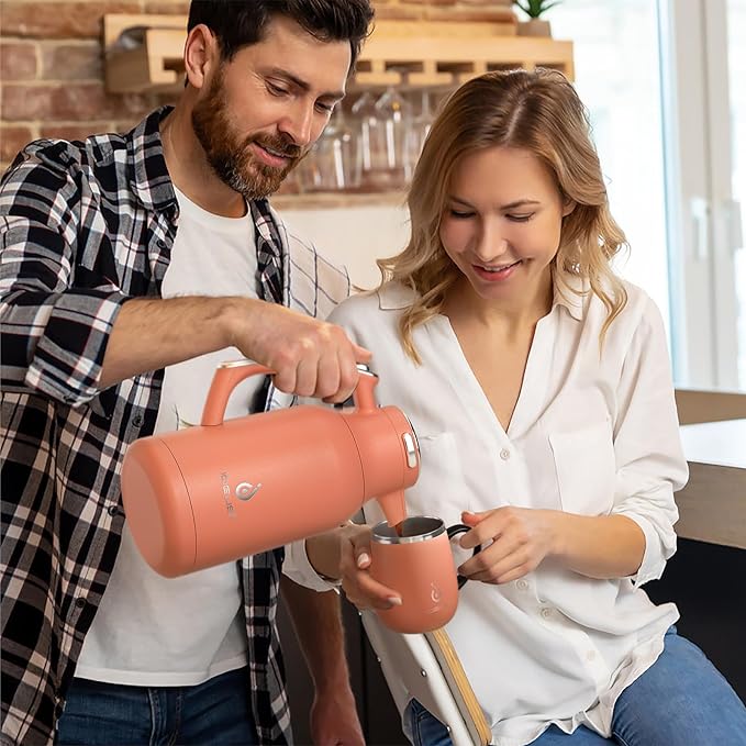 IDEUS Thermal Coffee Carafe 68oz (2,000ml), Stainless Steel Double Wall Insulated Vacuum Flask, Water Jug Coffee Server and Beverage Dispenser, Heat and Cold Retention (Coral, 68oz (2,000ml))