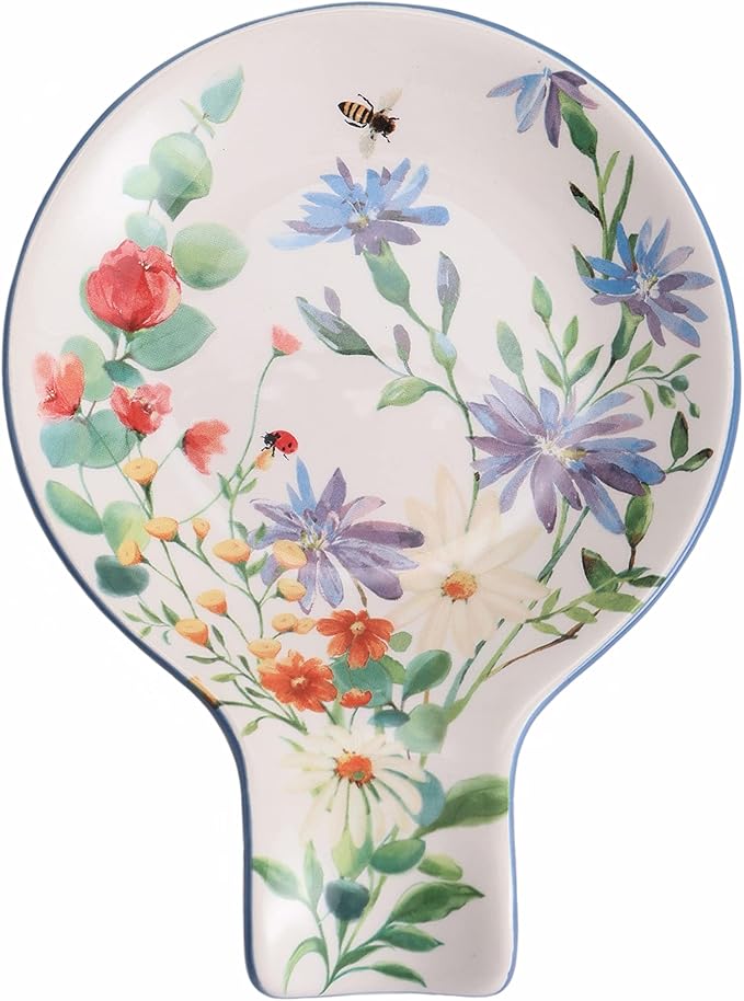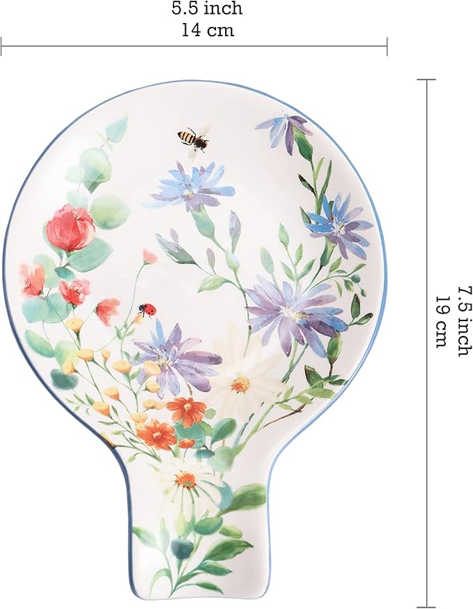 Bico Summer Provence Spoon Rest for Stove Top, Ceramic Spoon Holder for Kitchen Counter, Easy to Clean Coffee Spoon Rest Dishwasher Safe, Kitchen Cooking Utensil Rest for Ladles Spatula