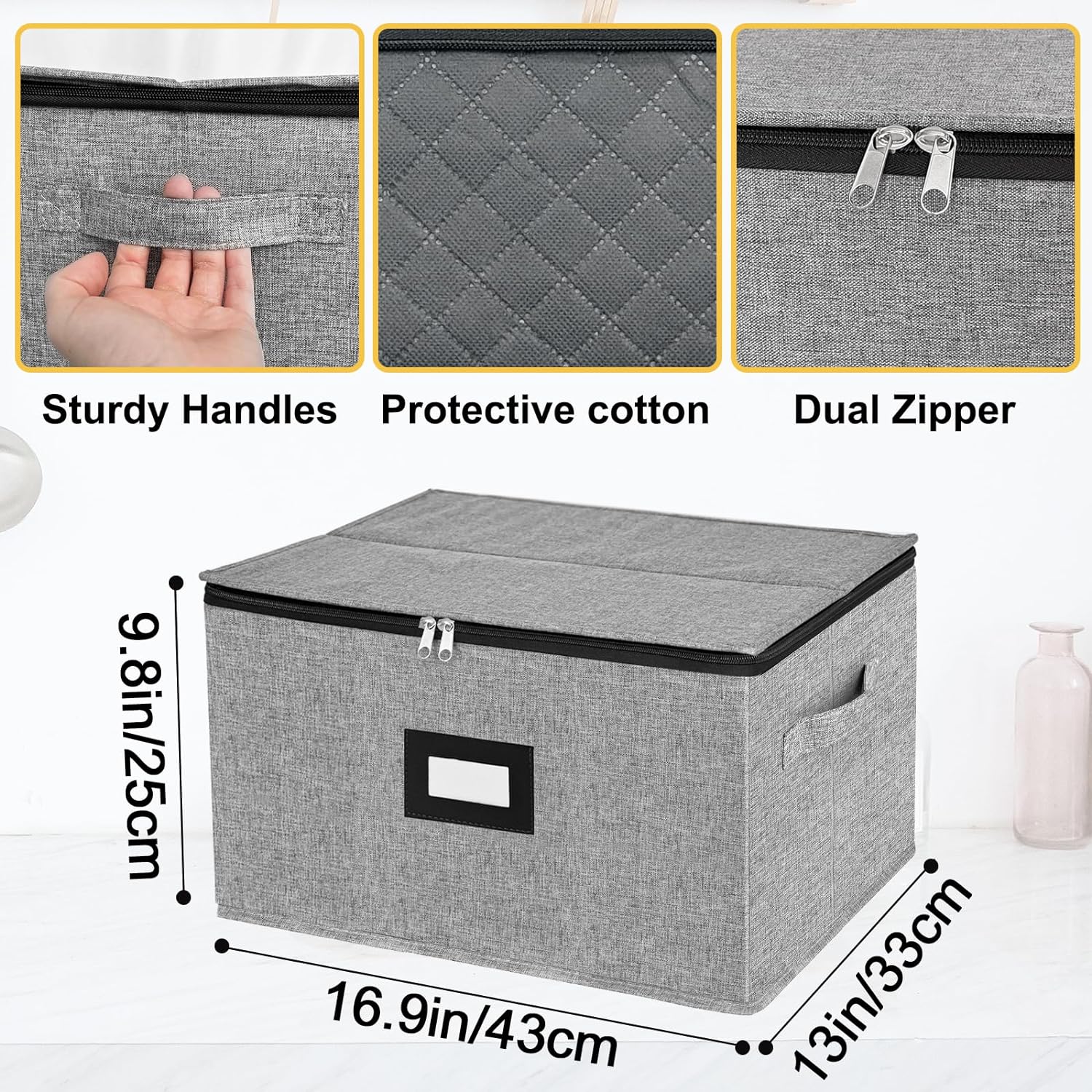 - đșăConvenient Design for CrystalăThe labels on the storage for glassware can help you easily identify which product inside without opening the case, the hardshell top lid prevents glassware from dust and break, easy to carry and store .The glasses storage box equipped with #5 stainless steel zippers which are hard to be broken,and zippered closures to protect from dust.two-way zippers allow it to easily slide along the colsure when in use.