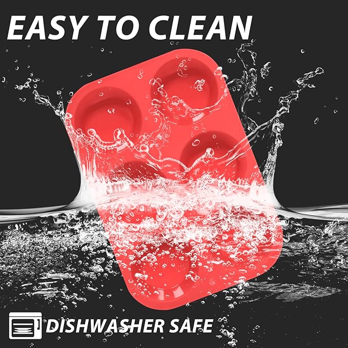 - FLEXIBLE & PREMIUM SILICONE - The Premium Muffin Baking Mold is made of BPA Free Food Grade high-quality silicone, ensuring its longevity and resistance to wear and tear. No odor, Non-Toxic, Flexible enough to maintain its original shape after every use. Easy to Clean and Store, dishwasher safe.